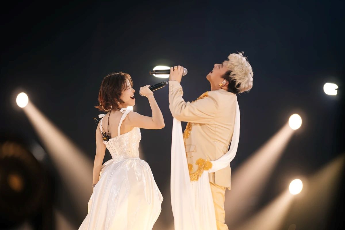 Trung Quân and Lâm Bảo Ngọc performing on the “Legacy of Values” stage.