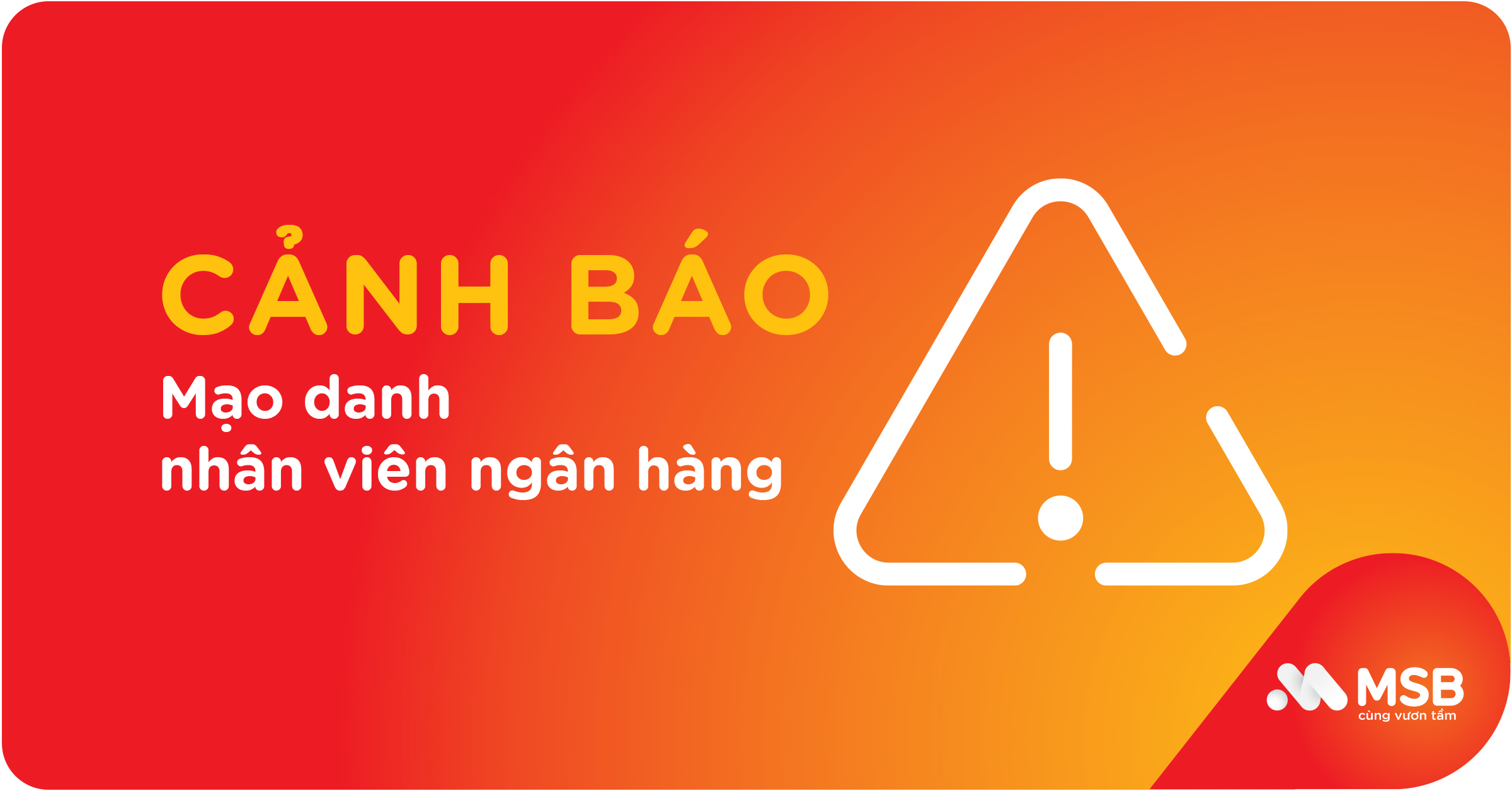 Quý khách hàng lưu ý: MSB không bao giờ yêu cầu khách hàng cung cấp thông tin như: mật khẩu, mã xác thực OTP,  Soft Token, số thẻ, mã CVV – tất cả đều là thông tin bảo mật của khách hàng.