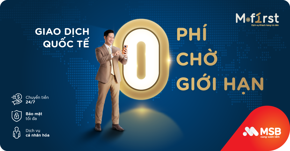 Giao dịch toàn cầu 0đ phí dành cho khách hàng ưu tiên MSB