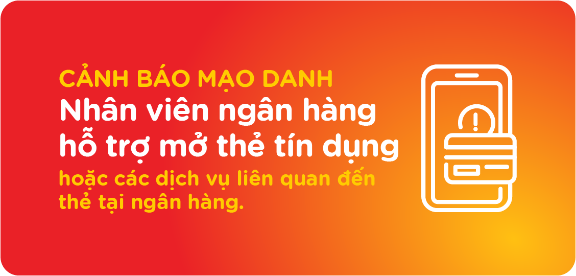 Đối tượng lừa đảo giả mạo nhân viên ngân hàng liên hệ chủ thẻ qua cuộc gọi để tư vấn, hỗ trợhồ sơ mở thẻ tín dụng và yêu cầu khách hàng cung cấp thông tin cá nhân bảo mật như số thẻ, mã OTP hoặc mật khẩu dịch vụ ngân hàng điện tử. Sau khi khách hàng cung cấp các thông tin trên, đối tượng lừa đảo sẽ thực hiện các giao dịch gian lận nhằm chiếm đoạt tiền.