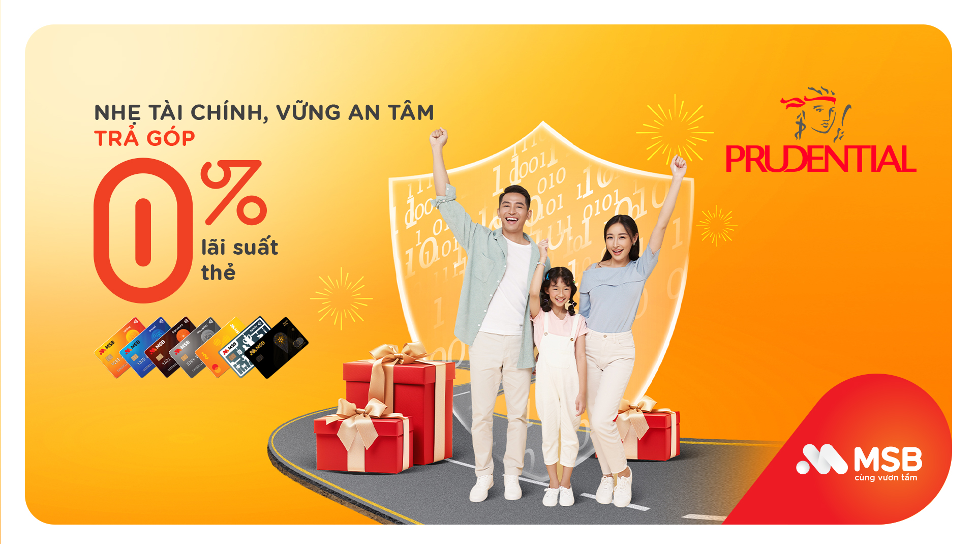 ✨ Ưu đãi trả góp 0% lãi suất trong 03 năm đầu tiên khi Quý khách mua bảo hiểm nhân thọ Prudential tại MSB và thanh toán bằng thẻ tín dụng MSB.